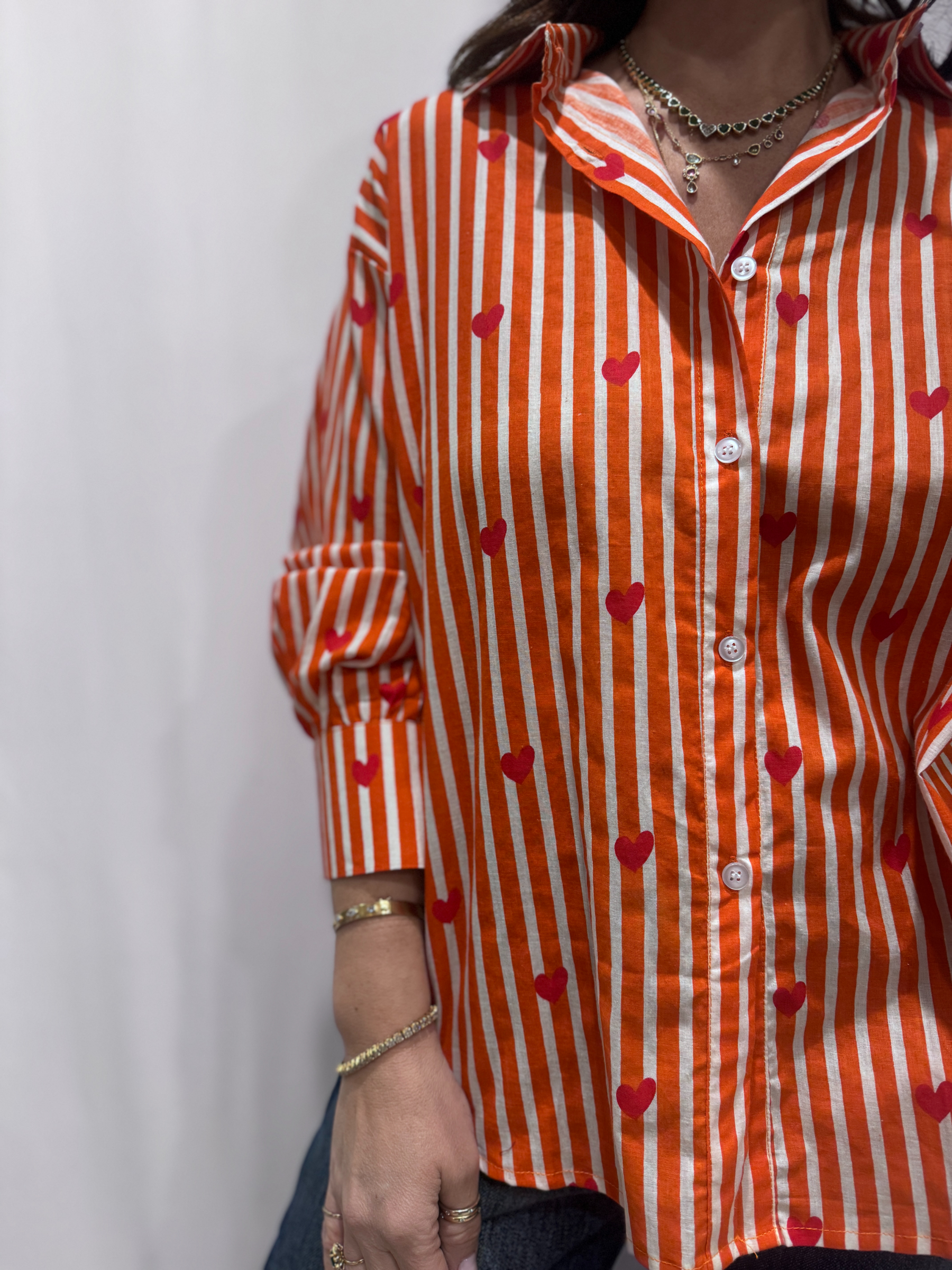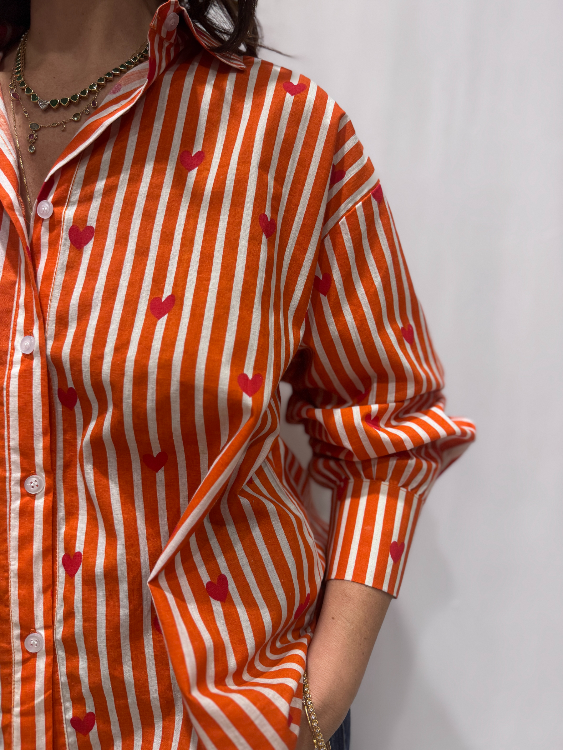 Elles s’associent à de délicats imprimés de cœurs rouges qui apportent une note originale et pleine de charme. Ce détail crée un contraste subtil et donne à la pièce une véritable identité.
