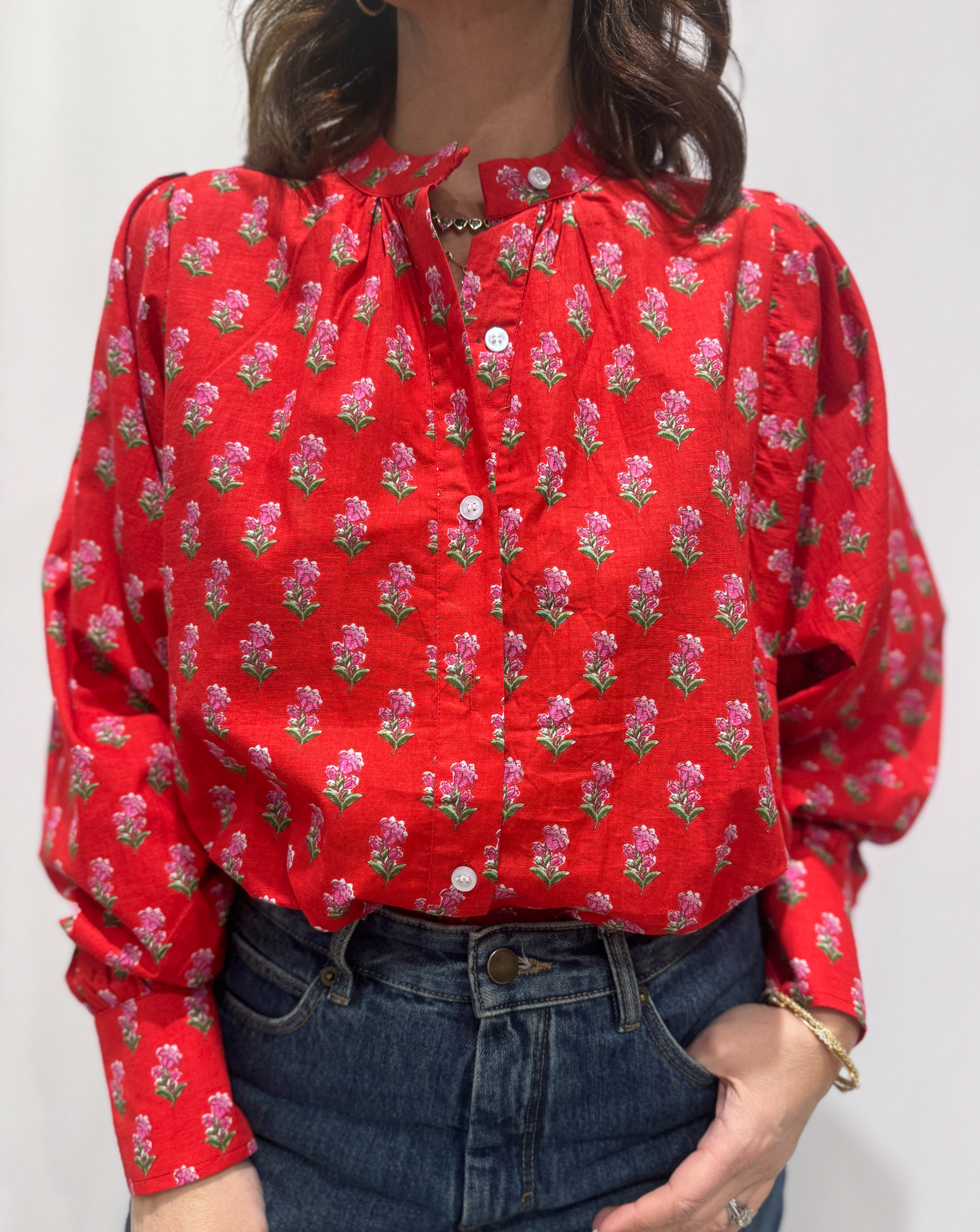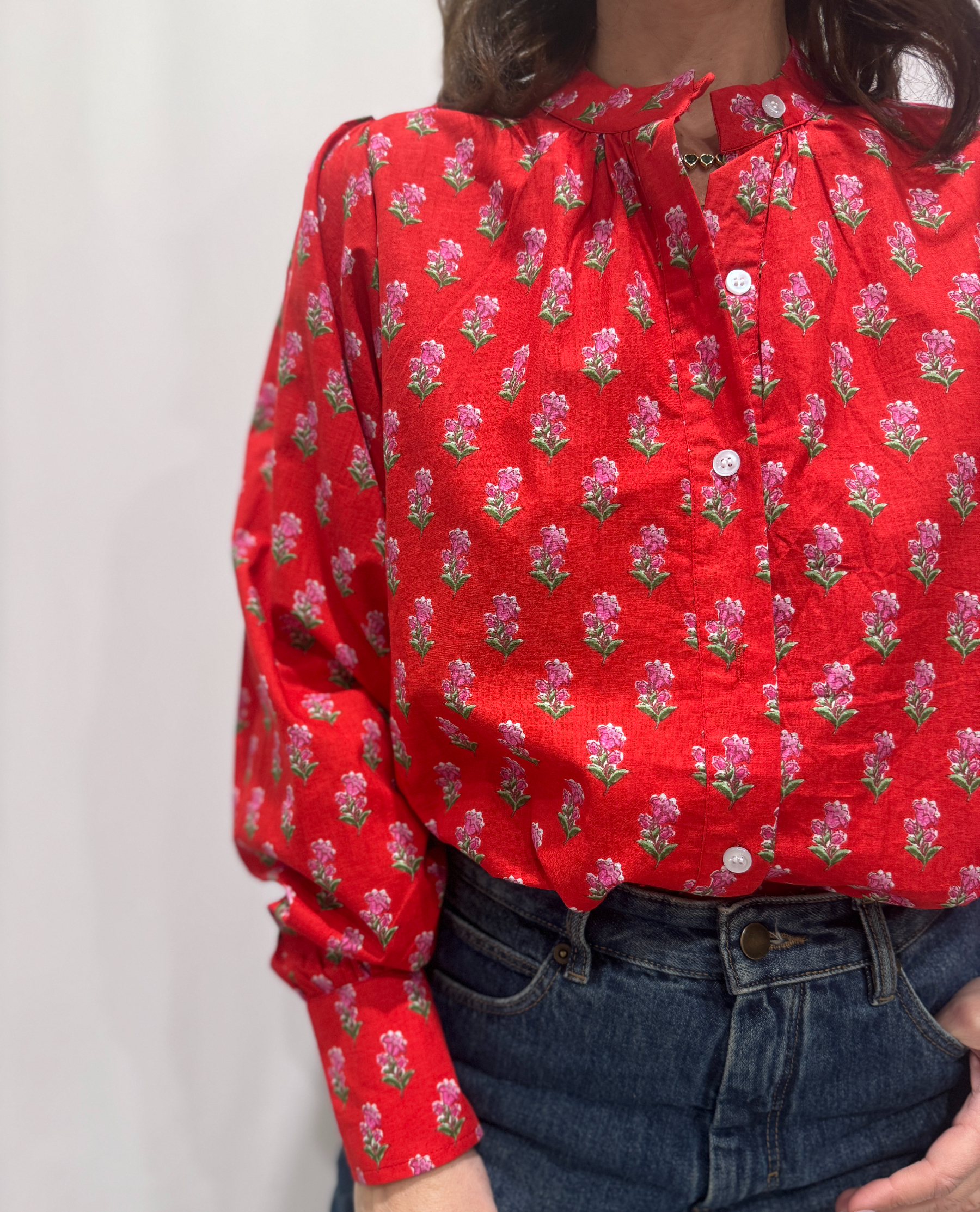 Parfaite pour le printemps et les journées ensoleillées, la blouse Jasmine Rouge se combine avec un jean, une jupe ou un pantalon léger. Elle permet de composer des looks simples et élégants en quelques instants.