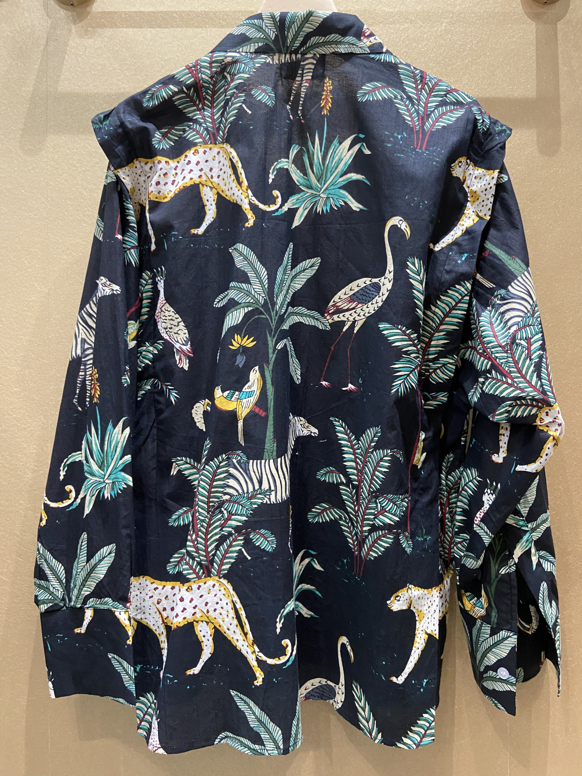 Cap sur l’aventure avec la Chemise Jungle Noir. Un modèle original et audacieux, inspiré de la beauté sauvage des jungles indiennes.