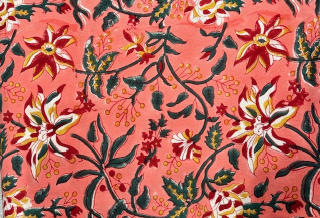 Confectionnée en 100 % coton et imprimée à la main selon la technique traditionnelle du block print.