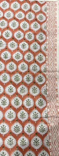 Confectionnée en 100 % coton et imprimée à la main selon la technique traditionnelle du block print.