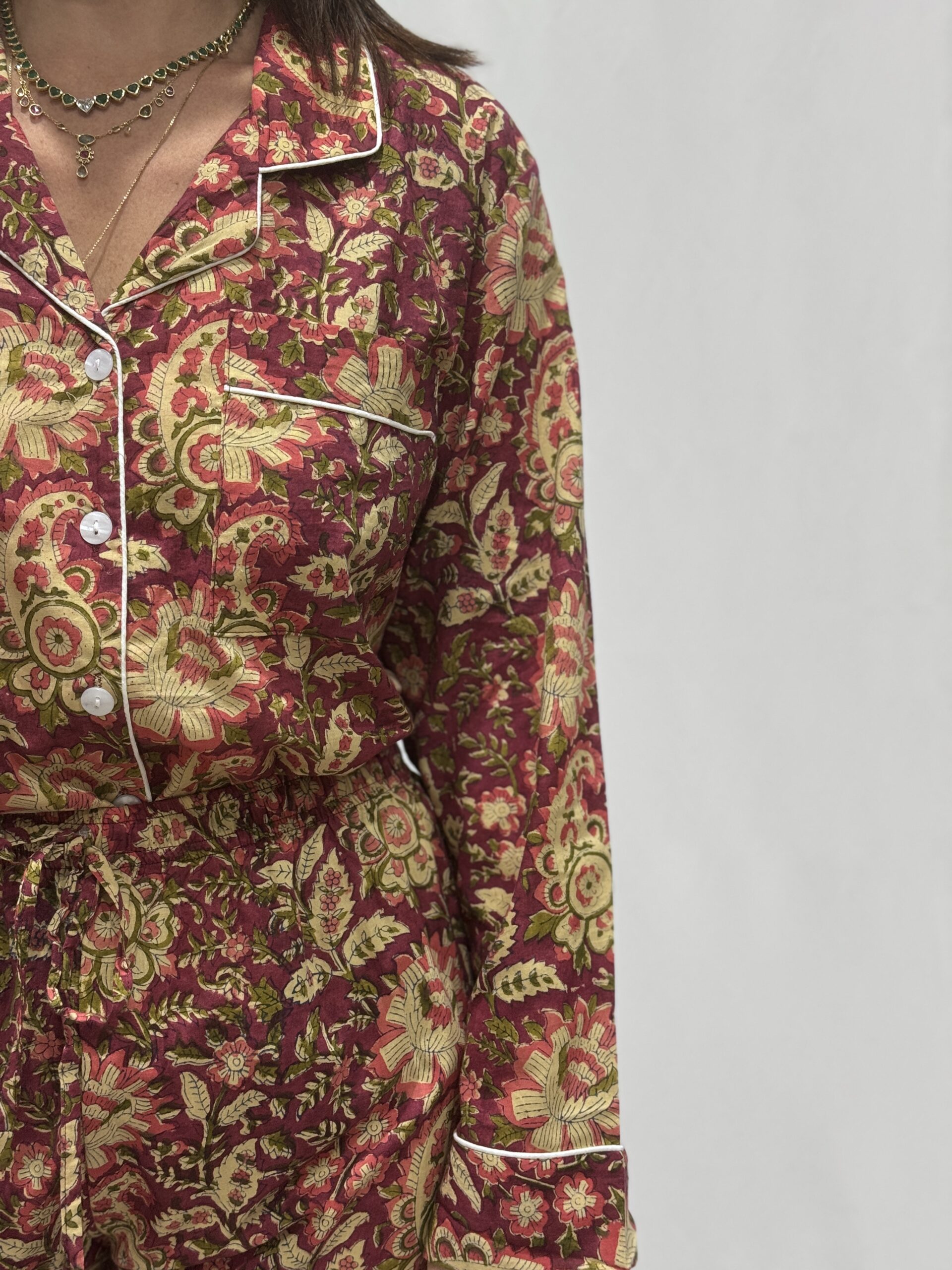 Ce pyjama reflète un art de vivre soigné et élégant. Il célèbre le confort, la beauté et l’attention portée aux détails. Il s’adresse à celles qui aiment les pièces uniques et raffinées. Un essentiel chic, pensé pour durer et pour faire plaisir.