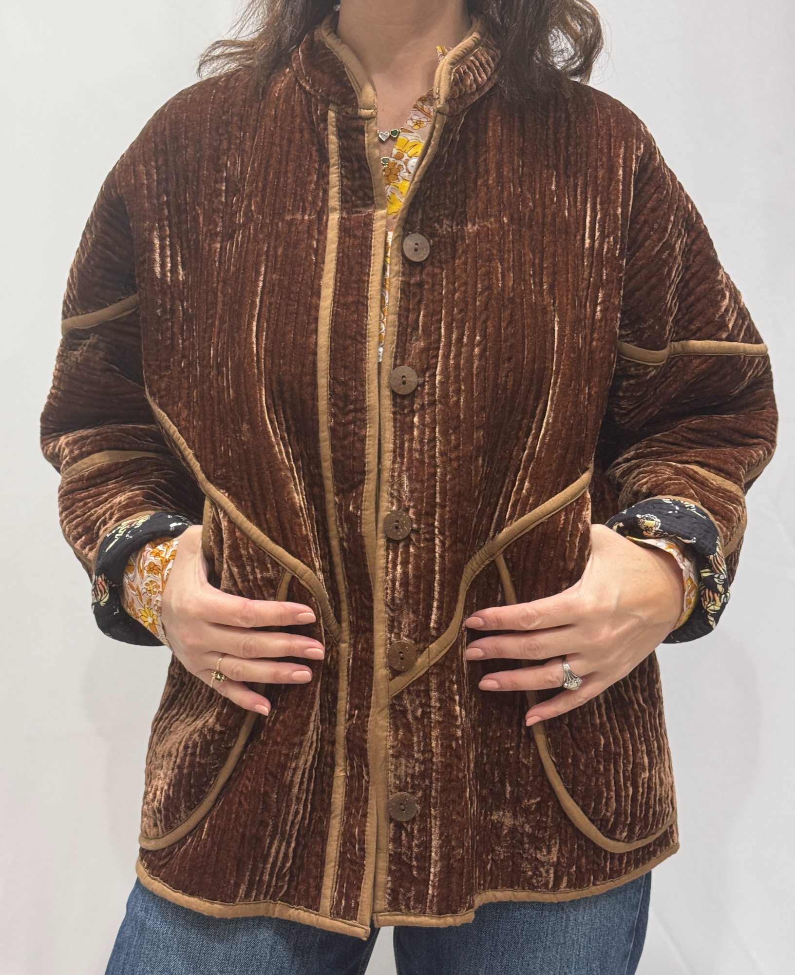 Ces vestes en velours de soie réversibles allient élégance et originalité.