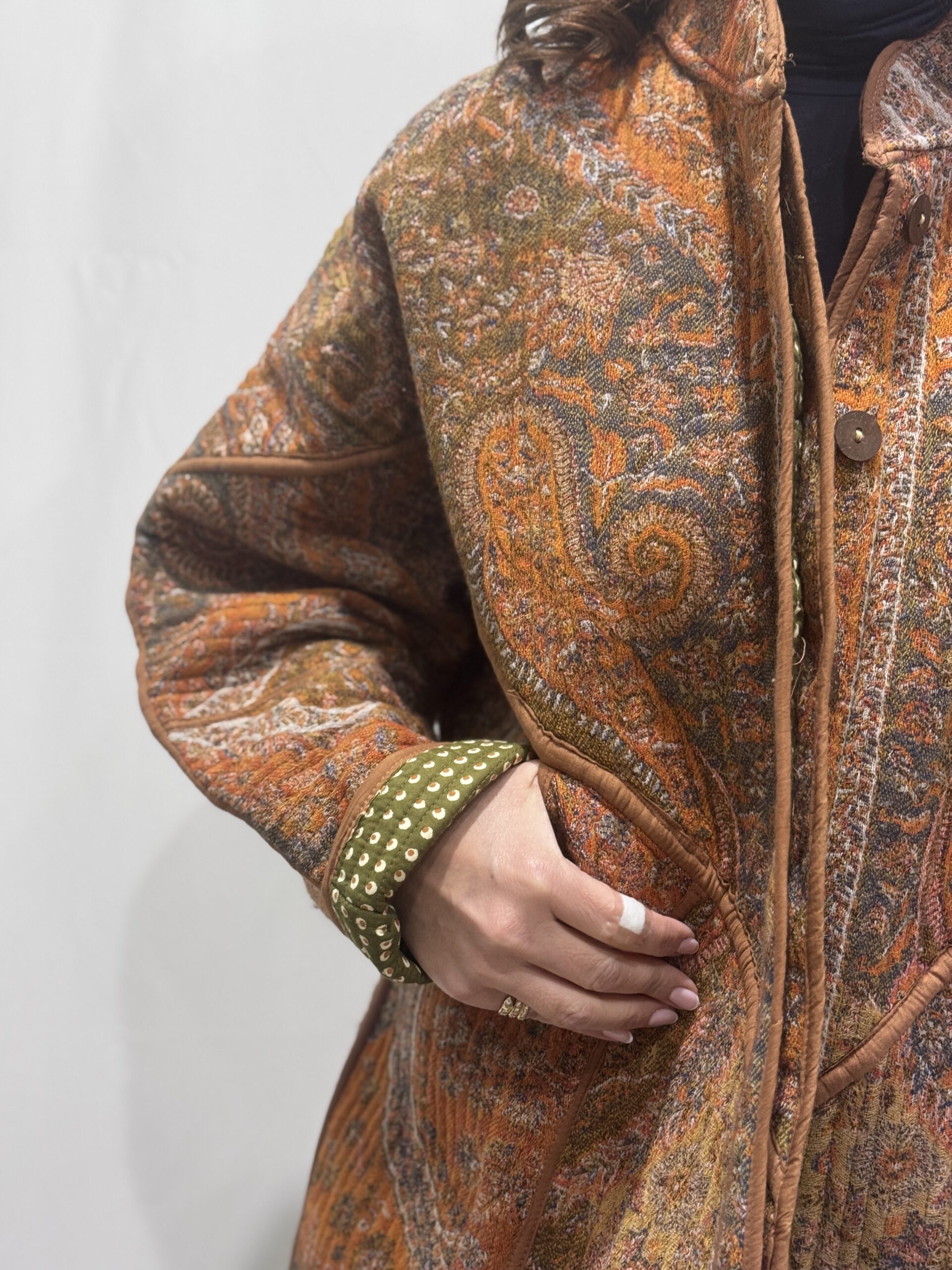 Chaque veste est unique et réalisée en un seul exemplaire. Les jeux de couleurs, les motifs et les associations varient d’une pièce à l’autre.