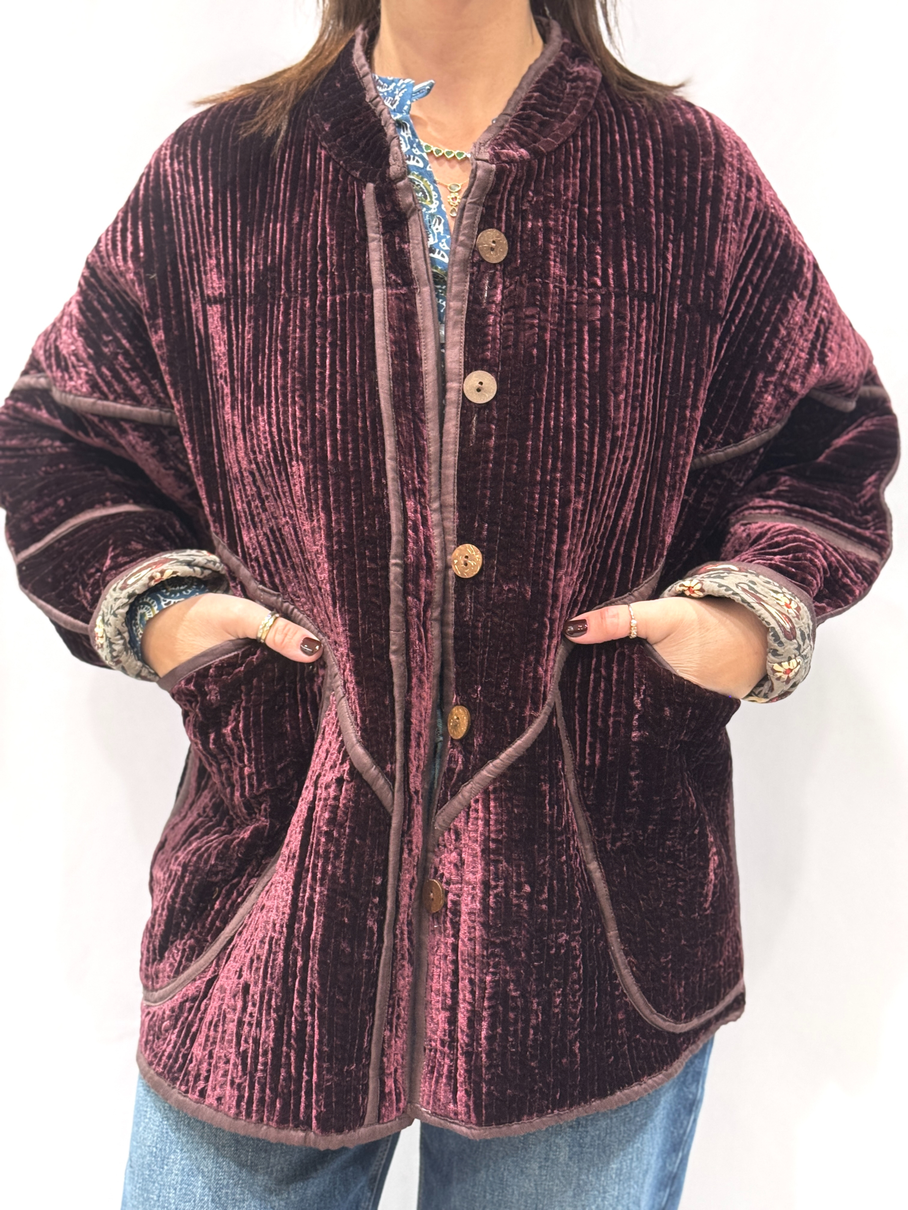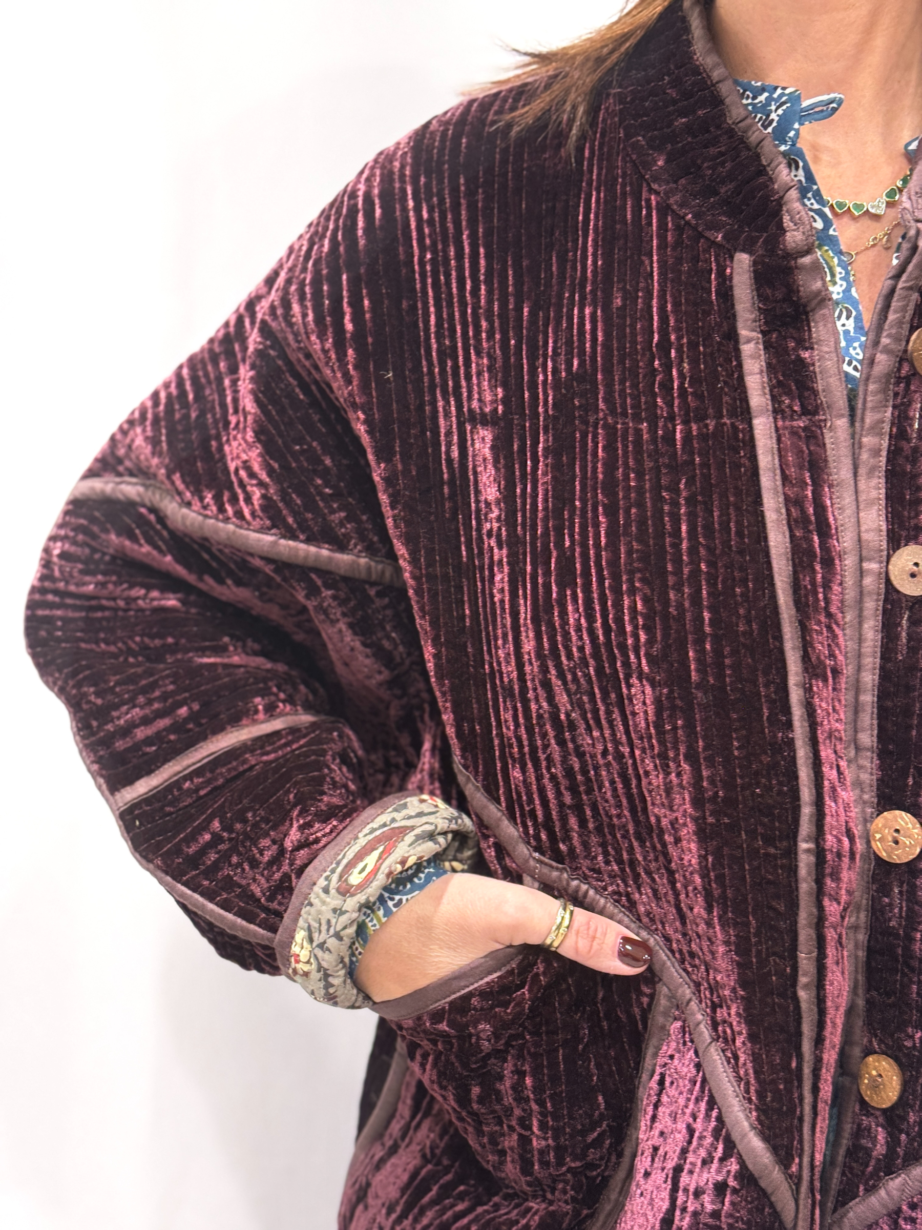 Ces vestes en velours de soie réversibles allient élégance et originalité.